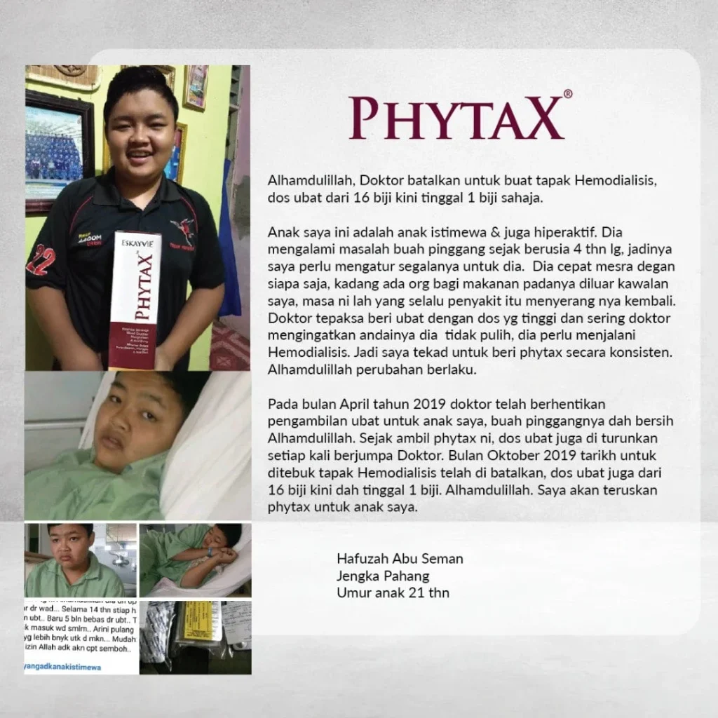 Produk ini famous dan terkenal sebab ia sangat berkualiti tinggi. Pernah menjadi produk No.1 pilihan ramai rakyat Malaysia, Brunei dan Singapore untuk penjagaan kesihatan 3 Serangkai. Lagipun Phytax menggunakan bahan-bahan aktif yang memenangi Anugerah Nobel Prize 2009!