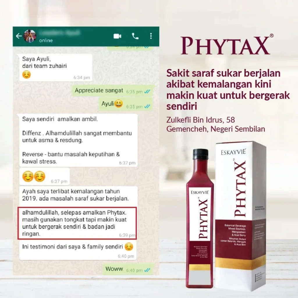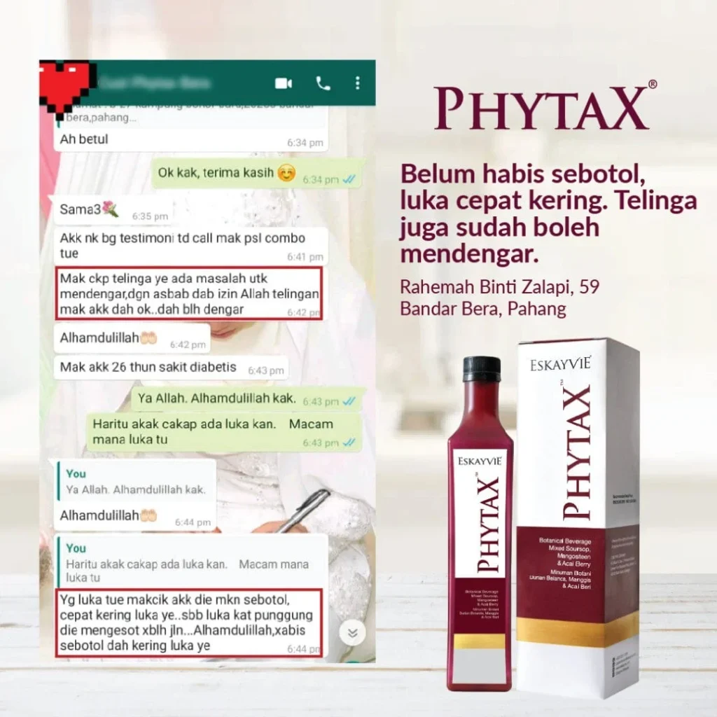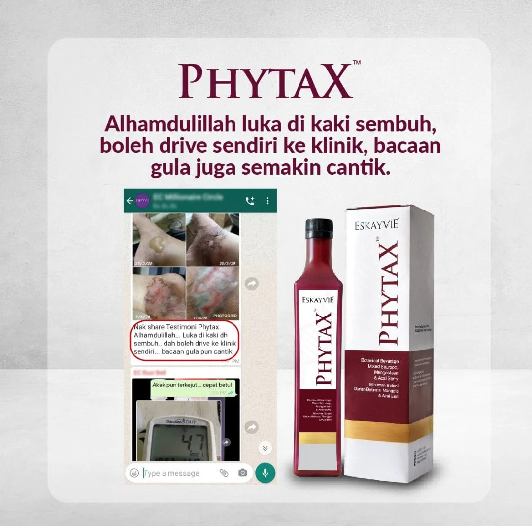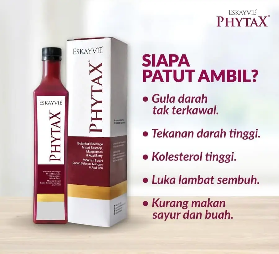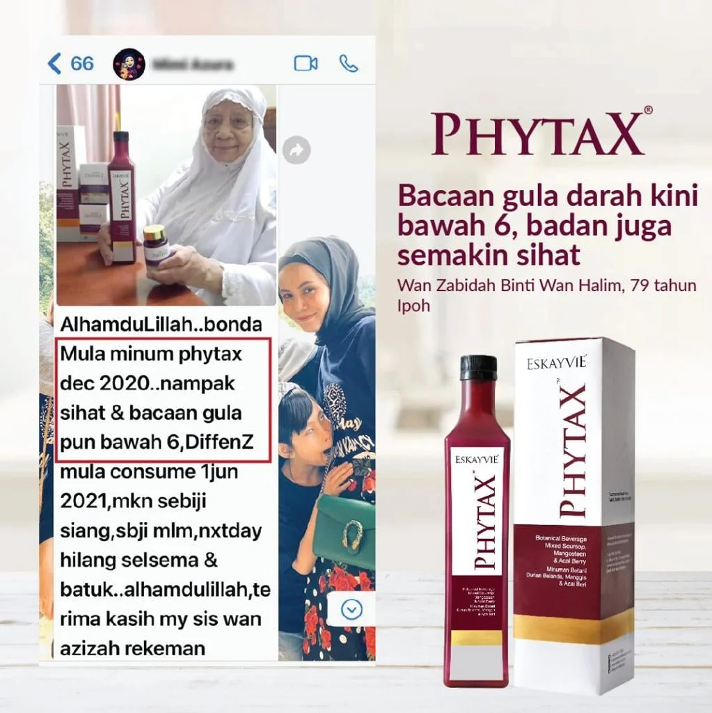 Minum Eskayvie Phytax secara istiqomah. Perhatikan bacaan gula darah. Dapatkan nasihat doktor secara berkala untuk mengubah dos ubat.