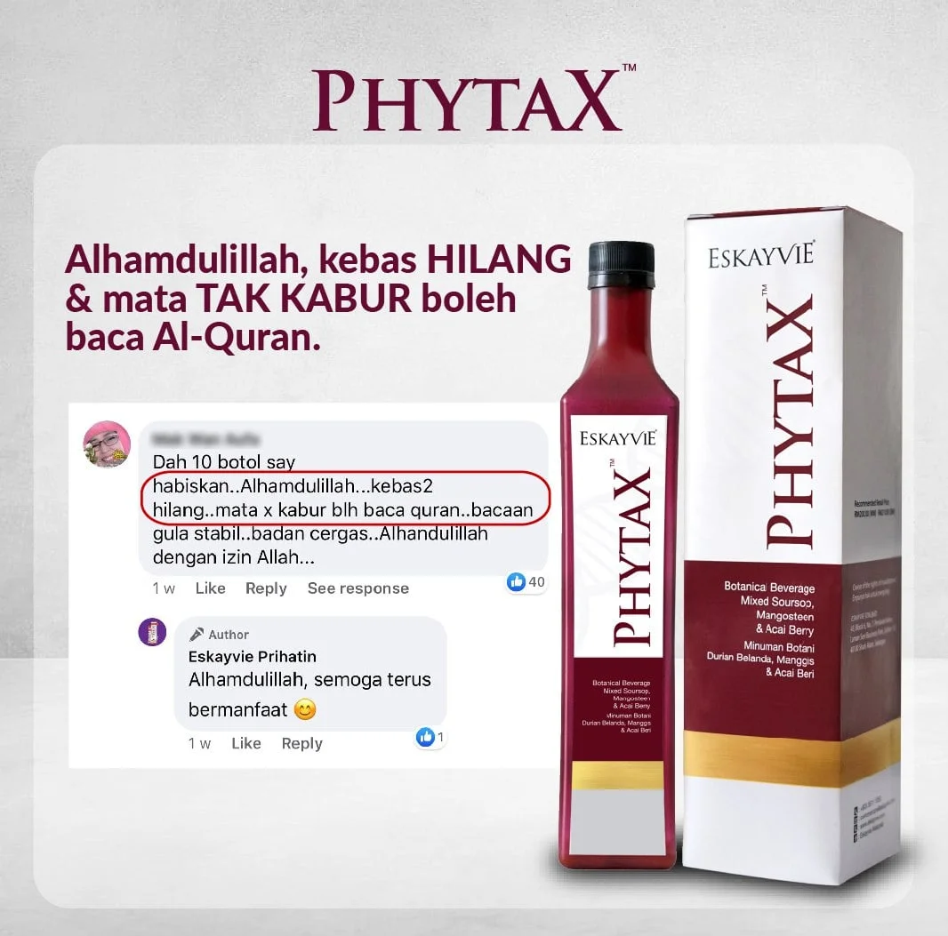 Sekarang, ramai orang dah rasa menggigil tak sabar nak cuba ESKAYVIE PHYTAX. Termasuk anda yang tengah baca ni. Cuma takut rasa rugi, tak berbaloi. Sebab dah banyak sangat cuba produk yang ada kat luar. Betul tak?
