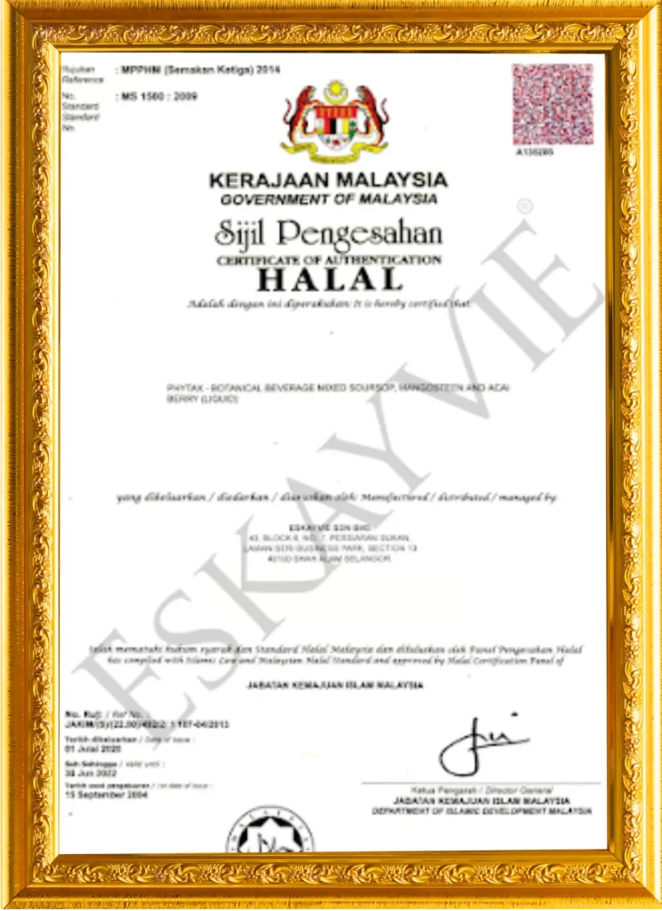 Ya. Eskayvie Phytax diiktiraf HALAL oleh Jabatan Kemajuan Islam Malaysia (JAKIM).