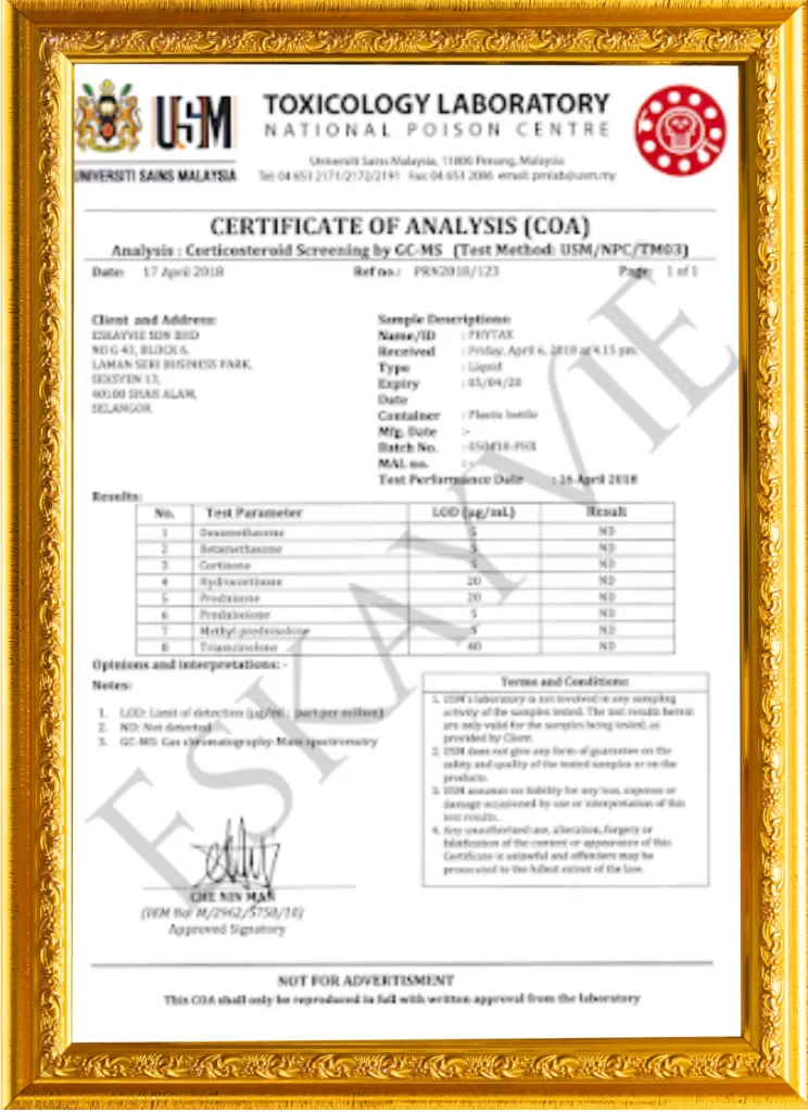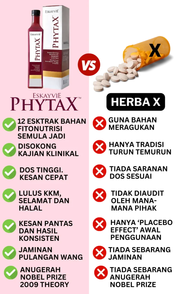 Apa yang pasti. ESKAYVIE PHYTAX Sangat Efektif, tanpa kesan sampingan sebab gunakan bahan aktif yang MENANG ANUGERAH “NOBEL PRIZE 2009” — diiktiraf oleh KKM.